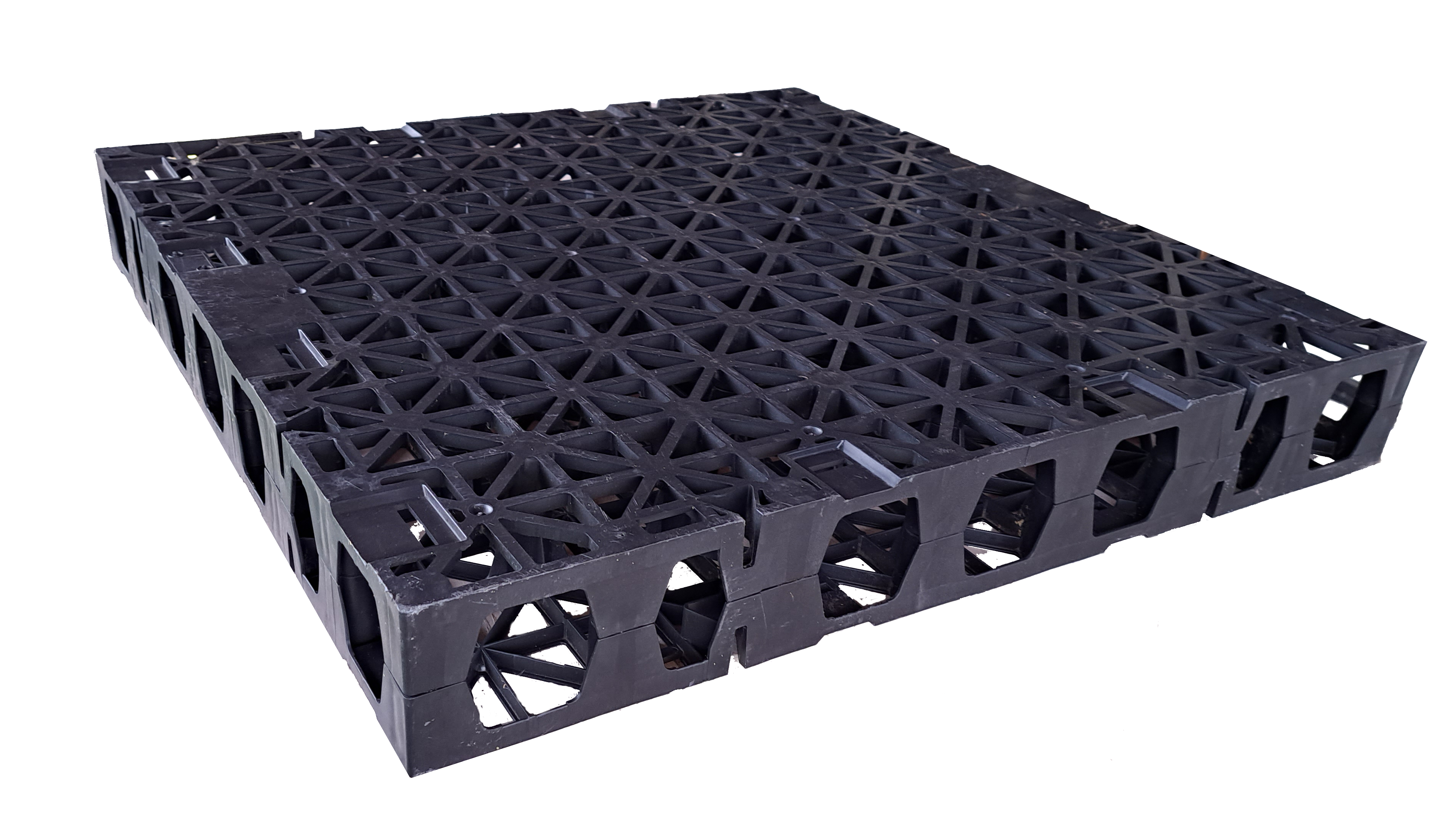 Matrix (connected elements). Thanks to the connectors, the system becomes one connected whole, a click mechanism prevents any individual subsidence of the crates.